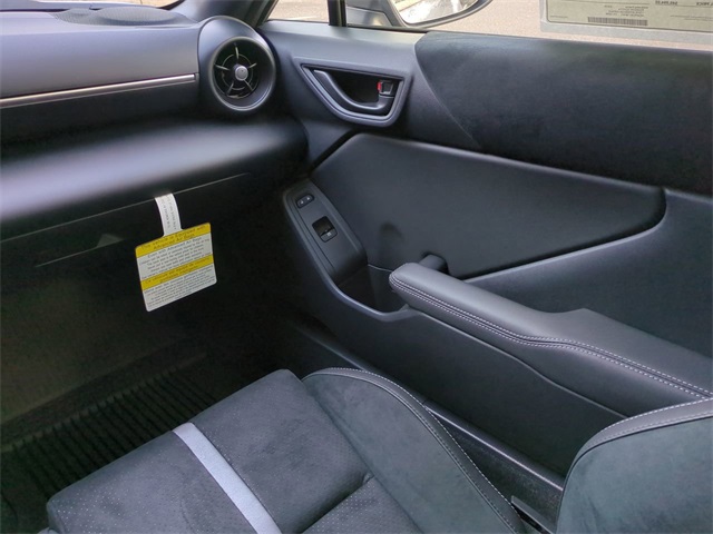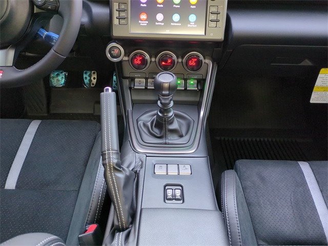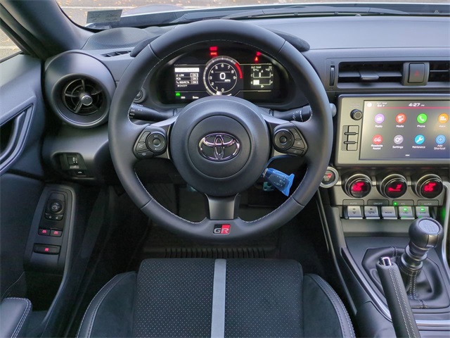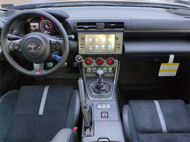 The Optional Features Included on this vehicles are: All Weather Mat Package (TMS), GR Wheel Package (TMS), Performance Package (Brembo Brakes and SACHS Dampers), 2-Stage Heated Sport Front Seats, 4-Wheel Disc Brakes, 8 Speakers, ABS brakes, Air Conditioning, Alloy wheels, AM/FM radio: SiriusXM, Apple CarPlay/Android Auto, Automatic temperature control, Black GR Performance Dual Exhaust (TMS), Brake assist, Bumpers: body-color, Delay-off headlights, Driver door bin, Driver vanity mirror, Dual front impact airbags, Dual front side impact airbags, Electronic Stability Control, Emergency communication system: Safety Connect (1-year trial), Exterior Parking Camera Rear, Four wheel independent suspension, Front anti-roll bar, Front Bucket Seats, Front dual zone A/C, Front reading lights, Fully automatic headlights, GR Shift Knob (TMS), Heated door mirrors, Heated front seats, Illuminated entry, Knee airbag, Leather Shift Knob, Leather steering wheel, Low tire pressure warning, Occupant sensing airbag, Outside temperature display, Overhead airbag, Panic alarm, Passenger door bin, Passenger vanity mirror, Power door mirrors, Power steering, Power windows, Radio data system, Radio: GR86 Audio, Rear anti-roll bar, Rear window defroster, Remote keyless entry, Security system, Speed control, Spoiler, Steering wheel mounted audio controls, Tachometer, Telescoping steering wheel, Tilt steering wheel, Traction control, Trip computer, Ultrasuede Seat Trim w/Leather Bolsters, Variably intermittent wipers, and Wheels: 18" Matte-Black-Painted Alloy.