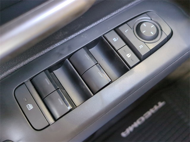 The Optional Features Included on this vehicles are: 4WD, 3.583 Axle Ratio, 4-Wheel Disc Brakes, 6 Speakers, ABS brakes, Air Conditioning, All Weather Floor Liners (TMS), Alloy wheels, AM/FM radio: SiriusXM, Anti-whiplash front head restraints, Apple CarPlay/Android Auto, Auto High-beam Headlights, Auto-dimming Rear-View mirror, Automatic temperature control, Black Badge Overlay (TMS), Black Oval Tube Step (TMS), Black Tailgate Insert (TMS), Brake assist, Bumpers: body-color, Door Edge Guard (TMS), Driver door bin, Driver vanity mirror, Dual front impact airbags, Dual front side impact airbags, Electronic Stability Control, Emergency communication system: Safety Connect (1-year trial), Exterior Parking Camera Rear, Fabric Seat Trim, Four wheel independent suspension, Front anti-roll bar, Front Bucket Seats, Front Center Armrest, Front fog lights, Front reading lights, Fully automatic headlights, Heated door mirrors, Heated Seats, Illuminated entry, JBL Premium Audio, Knee airbag, Leather Shift Knob, Leather steering wheel, Low tire pressure warning, Mudguards (TMS), Occupant sensing airbag, Outside temperature display, Overhead airbag, Overhead console, Panic alarm, Passenger door bin, Passenger vanity mirror, Power door mirrors, Power steering, Power windows, Radio: 8" Toyota Audio Multimedia, Rear step bumper, Rear window defroster, Remote keyless entry, Security system, SofTex Seat Trim, Speed control, Speed-sensing steering, Split folding rear seat, Spray-On Bed Liner (TMS), Steering wheel mounted audio controls, Tachometer, Telescoping steering wheel, Tilt steering wheel, Traction control, Trip computer, Turn signal indicator mirrors, Variably intermittent wipers, and Wheels: 17" TRD Off-Road Alloy.