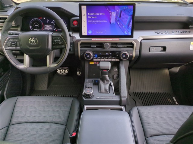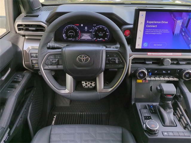 The Optional Features Included on this vehicles are: TRD Sport Premium Package (3D Panoramic View Monitor, JBL Premium Audio, and Radio: 14" Toyota Audio Multimedia w/TRD Premium), 4WD, 3.583 Axle Ratio, 4-Wheel Disc Brakes, 6 Speakers, ABS brakes, Air Conditioning, All Weather Floor Liners (TMS), Alloy wheels, AM/FM radio: SiriusXM, Anti-whiplash front head restraints, Apple CarPlay/Android Auto, Auto High-beam Headlights, Auto-dimming Rear-View mirror, Automatic temperature control, Black Tailgate Insert (TMS), Brake assist, Bumpers: body-color, Driver door bin, Driver vanity mirror, Dual front impact airbags, Dual front side impact airbags, Electronic Stability Control, Emergency communication system: Safety Connect (1-year trial), Exterior Parking Camera Rear, Fabric Seat Trim, Four wheel independent suspension, Front anti-roll bar, Front Bucket Seats, Front Center Armrest, Front fog lights, Front reading lights, Fully automatic headlights, Heated door mirrors, Illuminated entry, Illuminated Front Emblem Bright Chrome (TMS), Knee airbag, Leather Shift Knob, Leather steering wheel, Low tire pressure warning, Occupant sensing airbag, Outside temperature display, Overhead airbag, Overhead console, Panic alarm, Passenger door bin, Passenger vanity mirror, Power door mirrors, Power steering, Power windows, Radio: 8" Toyota Audio Multimedia, Rear step bumper, Rear window defroster, Remote keyless entry, Security system, SofTex Seat Trim, Speed control, Speed-sensing steering, Split folding rear seat, Spray-On Bed Liner (TMS), Steering wheel mounted audio controls, Tachometer, Telescoping steering wheel, Tilt steering wheel, Traction control, Trip computer, Turn signal indicator mirrors, Variably intermittent wipers, and Wheels: 18" TRD Sport Alloy.