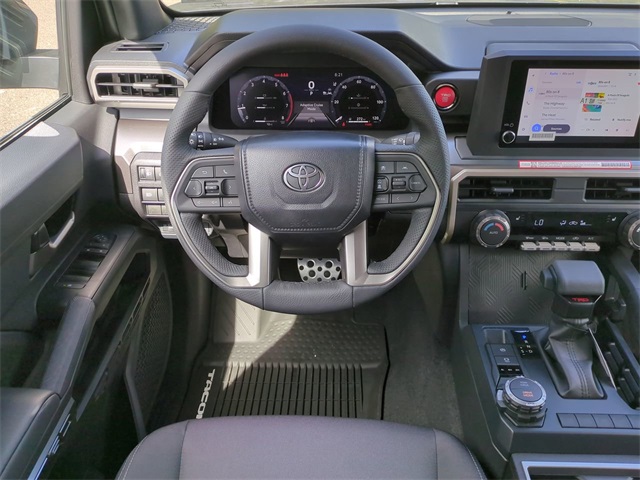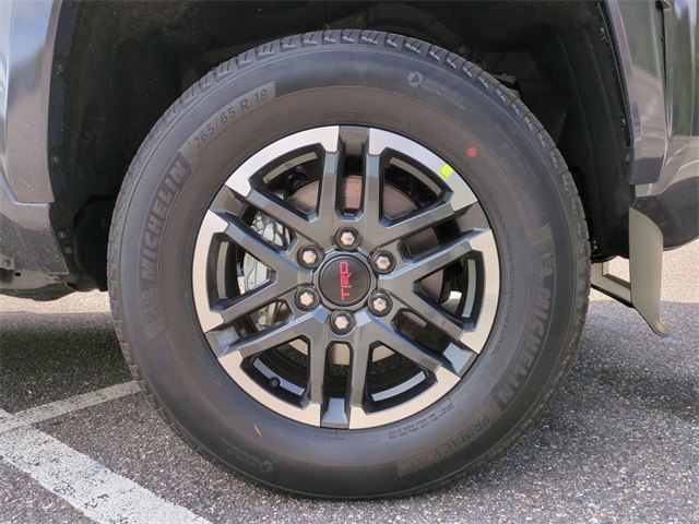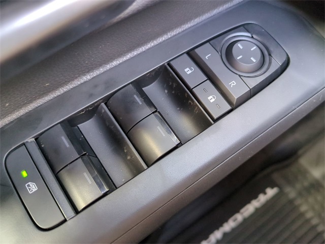 The Optional Features Included on this vehicles are: 4WD, 3.583 Axle Ratio, 4-Wheel Disc Brakes, 6 Speakers, ABS brakes, Air Conditioning, All Weather Floor Liners (TMS), Alloy wheels, AM/FM radio: SiriusXM, Anti-whiplash front head restraints, Apple CarPlay/Android Auto, Auto High-beam Headlights, Auto-dimming Rear-View mirror, Automatic temperature control, Black Badge Overlay (TMS), Brake assist, Bumpers: body-color, Door Edge Guard (TMS), Driver door bin, Driver vanity mirror, Dual front impact airbags, Dual front side impact airbags, Electronic Stability Control, Emergency communication system: Safety Connect (1-year trial), Exterior Parking Camera Rear, Fabric Seat Trim, Four wheel independent suspension, Front anti-roll bar, Front Bucket Seats, Front Center Armrest, Front fog lights, Front reading lights, Fully automatic headlights, Heated door mirrors, Heated Seats, Illuminated entry, JBL Premium Audio, Knee airbag, Leather Shift Knob, Leather steering wheel, Low tire pressure warning, Occupant sensing airbag, Outside temperature display, Overhead airbag, Overhead console, Panic alarm, Passenger door bin, Passenger vanity mirror, Power door mirrors, Power steering, Power windows, Predator Step (TMS), Radio: 8" Toyota Audio Multimedia, Rear step bumper, Rear window defroster, Remote keyless entry, Security system, SofTex Seat Trim, Speed control, Speed-sensing steering, Split folding rear seat, Spray-On Bed Liner (TMS), Steering wheel mounted audio controls, Tachometer, Telescoping steering wheel, Tilt steering wheel, Traction control, Trip computer, Turn signal indicator mirrors, Variably intermittent wipers, and Wheels: 18" TRD Sport Alloy.
