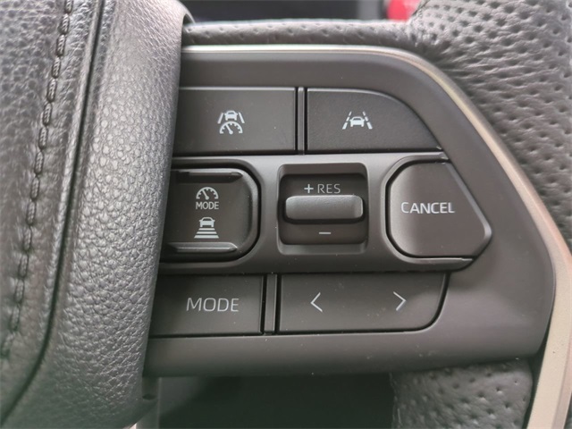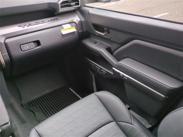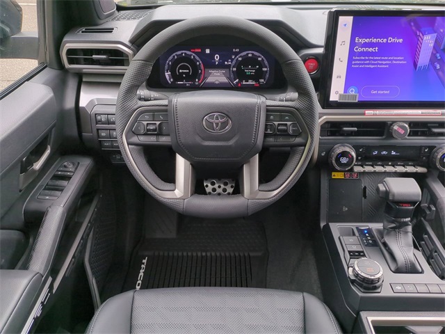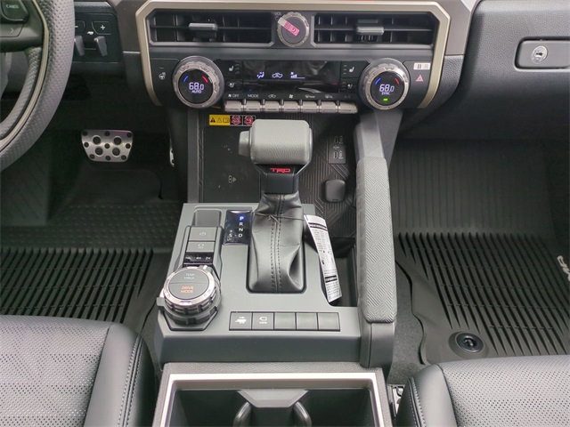 The Optional Features Included on this vehicles are: TRD Sport Premium Package (3D Panoramic View Monitor, JBL Premium Audio, and Radio: 14" Toyota Audio Multimedia w/TRD Premium), 4WD, 3.583 Axle Ratio, 4-Wheel Disc Brakes, 6 Speakers, ABS brakes, Air Conditioning, All Weather Floor Liners (TMS), Alloy wheels, AM/FM radio: SiriusXM, Anti-whiplash front head restraints, Apple CarPlay/Android Auto, Auto High-beam Headlights, Auto-dimming Rear-View mirror, Automatic temperature control, Black Badge Overlay (TMS), Black Tailgate Insert (TMS), Brake assist, Bumpers: body-color, Door Edge Guard (TMS), Door Panel Scuff Protector (TMS), Driver door bin, Driver vanity mirror, Dual front impact airbags, Dual front side impact airbags, Electronic Stability Control, Emergency communication system: Safety Connect (1-year trial), Exterior Parking Camera Rear, Fabric Seat Trim, Four wheel independent suspension, Front anti-roll bar, Front Bucket Seats, Front Center Armrest, Front fog lights, Front reading lights, Fully automatic headlights, Heated door mirrors, Illuminated entry, Knee airbag, Leather Shift Knob, Leather steering wheel, Low tire pressure warning, Occupant sensing airbag, Outside temperature display, Overhead airbag, Overhead console, Panic alarm, Passenger door bin, Passenger vanity mirror, Power door mirrors, Power steering, Power windows, Predator Step (TMS), Radio: 8" Toyota Audio Multimedia, Rear step bumper, Rear window defroster, Remote keyless entry, Security system, SofTex Seat Trim, Speed control, Speed-sensing steering, Split folding rear seat, Spray-On Bed Liner (TMS), Steering wheel mounted audio controls, Tachometer, Telescoping steering wheel, Tilt steering wheel, Traction control, Trip computer, Turn signal indicator mirrors, Variably intermittent wipers, and Wheels: 18" TRD Sport Alloy.
