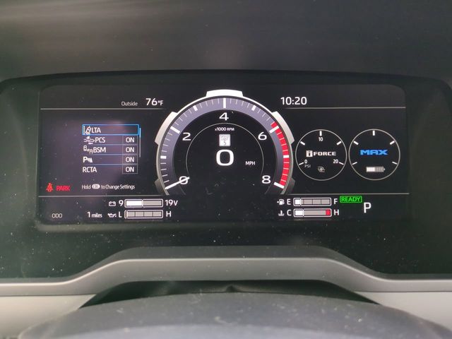 The Optional Features Included on this vehicles are: Nightshade Package (4x4 Badge, Black Overfenders and Rear Bumper, Gloss Black Door Handles, Gloss Black Mirror Caps, Gloss Black Tailgate Handle, Gloss Black Window Molding, and Wheels: 20" TRD Sport Matte-Black Alloy), V6 Hybrid, 10-Speed Automatic, 4WD, 3rd row seats: split-bench, 4-Wheel Disc Brakes, 8 Speakers, ABS brakes, Air Conditioning, All-Weather Liners/Cargo Mat, Alloy wheels, AM/FM radio: SiriusXM, Anti-whiplash front head restraints, Apple CarPlay/Android Auto, Auto High-beam Headlights, Auto-dimming door mirrors, Auto-dimming Rear-View mirror, Automatic temperature control, Brake assist, Bumpers: body-color, Delay-off headlights, Door Edge Guard, Driver door bin, Driver vanity mirror, Dual front impact airbags, Dual front side impact airbags, Electronic Stability Control, Emergency communication system: Safety Connect (10-year trial), Exterior Parking Camera Rear, Front anti-roll bar, Front Bucket Seats, Front Center Armrest w/Storage, Front dual zone A/C, Front fog lights, Front reading lights, Front wheel independent suspension, Fully automatic headlights, Garage door transmitter: HomeLink, Headlight cleaning, Heated and Ventilated Front Seats, Heated door mirrors, Heated front seats, Heated steering wheel, Illuminated entry, JBL Premium Audio, Knee airbag, Leather Seat Trim, Leather Shift Knob, Leather steering wheel, Low tire pressure warning, Memory seat, Multimedia Glass Screen Protector, Navigation system: Drive Connect (1 year trial) includes Cloud Navigation with real time traffic and Google POI, Occupant sensing airbag, Outside temperature display, Overhead airbag, Overhead console, Panic alarm, Passenger door bin, Passenger vanity mirror, Power door mirrors, Power driver seat, Power Liftgate, Power moonroof, Power passenger seat, Power steering, Power Tilt/Slide Panoramic Rood with Power Sunshade, Power windows, Radio: 14" Toyota Audio Multimedia, Rear air conditioning, Rear reading lights, Rear seat center armrest, Rear window defroster, Rear window wiper, Reclining 3rd row seat, Remote keyless entry, Security system, Speed control, Speed-sensing steering, Split folding rear seat, Spoiler, Steering wheel mounted audio controls, Tachometer, Telescoping steering wheel, Tilt steering wheel, Traction control, Trip computer, Turn signal indicator mirrors, Variably intermittent wipers, Ventilated front seats, Voltmeter, Wheels: 20" Machined-Finish Alloy, and Wireless Smartphone Charger.