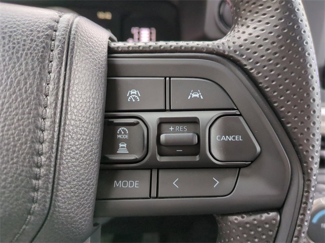 The Optional Features Included on this vehicles are: 4WD, 3.583 Axle Ratio, 4-Wheel Disc Brakes, 6 Speakers, ABS brakes, Air Conditioning, All Weather Floor Liners, Alloy wheels, AM/FM radio: SiriusXM, Anti-whiplash front head restraints, Apple CarPlay/Android Auto, Auto High-beam Headlights, Auto-dimming Rear-View mirror, Brake assist, Bumpers: body-color, Driver door bin, Dual front impact airbags, Dual front side impact airbags, Electronic Stability Control, Emergency communication system: Safety Connect (up to 10-year trial subscription), Exterior Parking Camera Rear, Fabric Seat Trim, Four wheel independent suspension, Front anti-roll bar, Front Bucket Seats, Front Center Armrest, Front fog lights, Front reading lights, Fully automatic headlights, Heated door mirrors, Heated Seats, Illuminated entry, JBL Premium Audio, Knee airbag, Low tire pressure warning, Occupant sensing airbag, Outside temperature display, Overhead airbag, Overhead console, Panic alarm, Passenger door bin, Power door mirrors, Power steering, Power windows, Radio: 8" Toyota Audio Multimedia, Rear step bumper, Rear window defroster, Remote keyless entry, Speed control, Speed-sensing steering, Split folding rear seat, Spray-on Bed Liner, Steering wheel mounted audio controls, Tachometer, Telescoping steering wheel, Tilt steering wheel, Traction control, Trip computer, Variably intermittent wipers, and Wheels: 17" Styled Alloy.