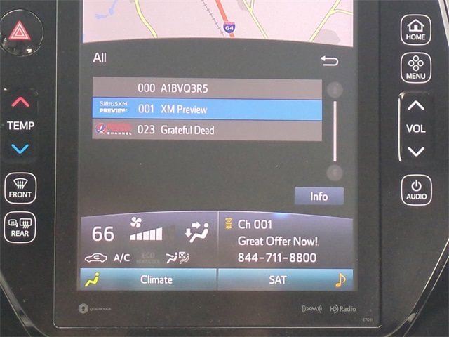 The Optional Features Included on this vehicles are: 4-Wheel Disc Brakes, 6 Speakers, ABS brakes, Air Conditioning, Alloy wheels, AM/FM radio: SiriusXM, Auto High-beam Headlights, Automatic temperature control, Brake assist, Bumpers: body-color, Delay-off headlights, Driver door bin, Driver vanity mirror, Dual front impact airbags, Dual front side impact airbags, Electronic Stability Control, Entune App Suite, Entune Multimedia Bundle, Exterior Parking Camera Rear, Four wheel independent suspension, Front anti-roll bar, Front Bucket Seats, Front Center Armrest, Front reading lights, Fully automatic headlights, Heated door mirrors, Heated Front Bucket Seats, Heated front seats, Illuminated entry, Knee airbag, Low tire pressure warning, Navigation System, Occupant sensing airbag, Outside temperature display, Overhead airbag, Overhead console, Panic alarm, Passenger door bin, Passenger vanity mirror, Power door mirrors, Power driver seat, Power steering, Power windows, Radio: Entune Prem Audio w/Integrated Navigation, Rear anti-roll bar, Rear seat center armrest, Rear window defroster, Remote keyless entry, SofTex Seat Trim, Speed control, Split folding rear seat, Steering wheel mounted audio controls, Telescoping steering wheel, Tilt steering wheel, Traction control, Trip computer, Variably intermittent wipers, and Wheels: 15" x 6.5J 5-Spoke Aluminum Alloy.