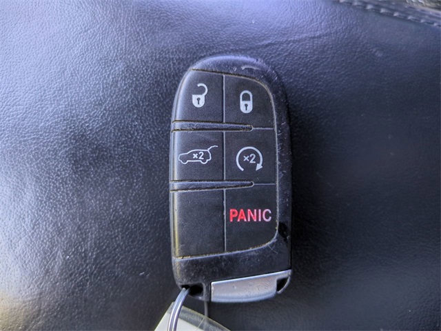 The Optional Features Included on this vehicles are: Quick Order Package 22S, AWD, 3.09 Rear Axle Ratio, 3rd row seats: split-bench, 4-Wheel Disc Brakes, 9 Speakers, ABS brakes, Air Conditioning, Alloy wheels, AM/FM radio: SiriusXM, Anti-whiplash front head restraints, Apple CarPlay/Android Auto, Audio memory, Auto High-beam Headlights, Auto-dimming door mirrors, Auto-dimming Rear-View mirror, Auto-leveling suspension, Automatic temperature control, Brake assist, Bumpers: body-color, Compass, Delay-off headlights, Driver door bin, Driver vanity mirror, Dual front impact airbags, Dual front side impact airbags, Electronic Stability Control, Emergency communication system: Roadside Assistance/9-1-1 Call, Four wheel independent suspension, Front anti-roll bar, Front Bucket Seats, Front Center Armrest w/Storage, Front dual zone A/C, Front fog lights, Front License Plate Bracket, Front reading lights, Fully automatic headlights, Garage door transmitter, Heated door mirrors, Heated front seats, Heated rear seats, Heated steering wheel, Heavy-Duty Engine Cooling, High-Intensity Discharge Headlights, Illuminated entry, Knee airbag, Leather steering wheel, Leather Suede Bucket Seats, Low tire pressure warning, Manufacturer's Statement of Origin, Memory seat, Navigation System, Occupant sensing airbag, Outside temperature display, Overhead airbag, Overhead console, Panic alarm, ParkView Rear Back-Up Camera, Passenger door bin, Passenger vanity mirror, Power door mirrors, Power driver seat, Power Liftgate, Power passenger seat, Power steering, Power windows, Radio data system, Radio: Uconnect 4C Nav w/8.4" Display, Rain sensing wipers, Rear air conditioning, Rear anti-roll bar, Rear Load Leveling Suspension, Rear reading lights, Rear seat center armrest, Rear window defroster, Rear window wiper, Remote keyless entry, Security system, Speed control, Speed-Sensitive Wipers, Split folding rear seat, Spoiler, Steering wheel mounted audio controls, Tachometer, Telescoping steering wheel, Tilt steering wheel, Traction control, Trip computer, Turn signal indicator mirrors, Variably intermittent wipers, and Wheels: 20" x 8.0" Satin Carbon - Design 1.