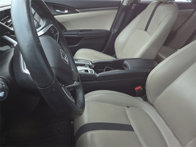 The Optional Features Included on this vehicles are: Ivory Leather, 17" Alloy Wheels, 4-Wheel Disc Brakes, 8 Speakers, ABS brakes, Adaptive Cruise Control: Adaptive Cruise Control (ACC) with Low-Speed Follow, Air Conditioning, Alloy wheels, AM/FM radio: SiriusXM, Apple CarPlay/Android Auto, Auto High-beam Headlights, Auto-dimming Rear-View mirror, Automatic temperature control, Brake assist, Bumpers: body-color, Delay-off headlights, Driver door bin, Driver vanity mirror, Dual front impact airbags, Dual front side impact airbags, Electronic Stability Control, Emergency communication system: HondaLink, Exterior Parking Camera Rear, Forward collision: Collision Mitigation Braking System (CMBS) + FCW mitigation, Four wheel independent suspension, Front anti-roll bar, Front Bucket Seats, Front Center Armrest, Front dual zone A/C, Front fog lights, Front reading lights, Fully automatic headlights, Garage door transmitter: HomeLink, Heated door mirrors, Heated Front Bucket Seats, Heated front seats, Illuminated entry, Lane departure: Lane Keeping Assist System (LKAS) active, Leather Seat Trim, Leather Shift Knob, Low tire pressure warning, Occupant sensing airbag, Outside temperature display, Overhead airbag, Overhead console, Panic alarm, Passenger door bin, Passenger vanity mirror, Power door mirrors, Power driver seat, Power moonroof, Power steering, Power windows, Radio data system, Radio: 180-Watt AM/FM/HD/SiriusXM Audio System, Rear anti-roll bar, Rear seat center armrest, Rear window defroster, Remote keyless entry, Security system, Speed control, Speed-sensing steering, Speed-Sensitive Wipers, Split folding rear seat, Spoiler, Steering wheel mounted audio controls, Tachometer, Telescoping steering wheel, Tilt steering wheel, Traction control, Trip computer, and Variably intermittent wipers.