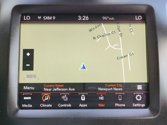 The Optional Features Included on this vehicles are: Quick Order Package 27E, Sun, Sound & Nav Group (DISC) (1-Year SiriusXM Guardian Trial, 4G LTE Wi-Fi Hot Spot, 5-Year SiriusXM Traffic Service, 5-Year SiriusXM Travel Link Service, 8.4" Touchscreen Display, Apple CarPlay, For Details, Visit DriveUconnect.com, For More Info, Call 800-643-2112, Google Android Auto, GPS Antenna Input, GPS Navigation, HD Radio, Integrated Voice Command w/Bluetooth, Off-Road Info Pages, Power Front/Fixed Rear Full Sunroof, Premium Alpine Speaker System, Radio: Uconnect 4C Nav w/8.4" Display, SiriusXM Radio Service, SiriusXM Satellite Radio, SiriusXM Traffic Plus, SiriusXM Travel Link, and USB Host Flip), Trailer Tow Group (7 & 4 Pin Wiring Harness, Class III Receiver Hitch, and Trailer Tow Wiring Harness), 3.517 Final Drive Ratio, 4-Wheel Disc Brakes, 6 Speakers, ABS brakes, Air Conditioning, Alloy wheels, AM/FM radio: SiriusXM, Anti-whiplash front head restraints, Apple CarPlay/Android Auto, Automatic temperature control, Brake assist, Cloth/Premium Vinyl Bucket Seats, Compass, Delay-off headlights, Driver door bin, Driver vanity mirror, Dual front impact airbags, Dual front side impact airbags, Electronic Stability Control, Four wheel independent suspension, Front anti-roll bar, Front Bucket Seats, Front Center Armrest, Front dual zone A/C, Front fog lights, Front License Plate Bracket, Front reading lights, Fully automatic headlights, Heated door mirrors, Heated front seats, Heated steering wheel, Illuminated entry, K-Black Door Trim Panel Appliques, K-Black Interior Accents, Knee airbag, Leather Shift Knob, Low tire pressure warning, Occupant sensing airbag, Off Road Suspension, Outside temperature display, Overhead airbag, Overhead console, Panic alarm, ParkView Rear Back-Up Camera, Passenger door bin, Passenger vanity mirror, Power door mirrors, Power driver seat, Power steering, Power windows, Radio data system, Radio: Uconnect 4 w/8.4" Display, Rain sensing wipers, Rear anti-roll bar, Rear reading lights, Rear seat center armrest, Rear side impact airbag, Rear window defroster, Rear window wiper, Remote keyless entry, Roof rack: rails only, Speed control, Speed-sensing steering, Split folding rear seat, Spoiler, Steering wheel mounted audio controls, Tachometer, Telescoping steering wheel, Tilt steering wheel, Traction control, Trip computer, Turn signal indicator mirrors, Variably intermittent wipers, Voltmeter, and Wheels: 17" x 7.5" Painted Diamond Cut AluminuM.