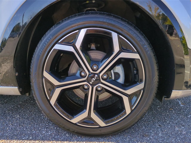 The Optional Features Included on this vehicles are: 1.6L I4 DGI Hybrid DOHC 16V LEV3-SULEV30, 4-Wheel Disc Brakes, 4.438 Axle Ratio, 6 Speakers, ABS brakes, Air Conditioning, Alloy wheels, AM/FM radio: SiriusXM, Apple CarPlay & Android Auto, Auto High-beam Headlights, Automatic temperature control, Brake assist, Bumpers: body-color, Cargo Net, Carpet Floor Mats, Cloth & Vegan Leather-Trimmed Seats, Delay-off headlights, Driver door bin, Driver vanity mirror, Dual front impact airbags, Dual front side impact airbags, Electronic Stability Control, Emergency communication system: Kia Connect (includes 1 year free trial), Exterior Parking Camera Rear, Four wheel independent suspension, Front anti-roll bar, Front Bucket Seats, Front Center Armrest, Front dual zone A/C, Front fog lights, Front reading lights, Fully automatic headlights, Heated door mirrors, Heated Front Bucket Seats, Heated front seats, Illuminated entry, Knee airbag, Leather Shift Knob, Low tire pressure warning, Navigation System, Occupant sensing airbag, Outside temperature display, Overhead airbag, Overhead console, Panic alarm, Passenger door bin, Passenger vanity mirror, Power door mirrors, Power driver seat, Power moonroof, Power steering, Power windows, Radio: AM/FM/HD/SiriusXM, Rain sensing wipers, Rear anti-roll bar, Rear seat center armrest, Rear window defroster, Rear window wiper, Remote keyless entry, Security system, Smart Key w/ Push Button and Remote Start, Speed control, Speed-sensing steering, Split folding rear seat, Spoiler, Steering wheel mounted audio controls, Telescoping steering wheel, Tilt steering wheel, Traction control, Trip computer, Turn signal indicator mirrors, Two-Level Luggage Board, Variably intermittent wipers, Wheel Locks, and Wheels: 18" Alloy w/Machined Finish.