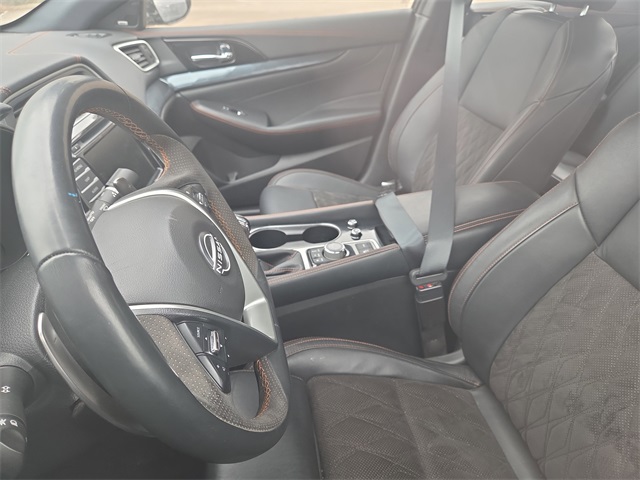 The Optional Features Included on this vehicles are: 11 Speakers, 4-Wheel Disc Brakes, ABS brakes, Air Conditioning, Alloy wheels, AM/FM radio: SiriusXM, Auto High-beam Headlights, Auto-dimming door mirrors, Auto-dimming Rear-View mirror, Automatic temperature control, Blind Spot Warning, Brake assist, Bumpers: body-color, CD player, Compass, Delay-off headlights, Driver door bin, Driver vanity mirror, Dual front impact airbags, Dual front side impact airbags, Electronic Stability Control, Emergency communication system: NissanConnect Services, Exterior Parking Camera Rear, Four wheel independent suspension, Front anti-roll bar, Front Bucket Seats, Front Center Armrest, Front dual zone A/C, Front fog lights, Front reading lights, Front Zero Gravity Climate-Controlled Seats, Fully automatic headlights, Garage door transmitter: HomeLink, Heated door mirrors, Heated front seats, Heated steering wheel, Illuminated entry, Knee airbag, Low tire pressure warning, Memory seat, Navigation system: Nissan Door to Door Connected Navigation, NissanConnect featuring Apple CarPlay and Android Auto, Occupant sensing airbag, Outside temperature display, Overhead airbag, Overhead console, Panic alarm, Passenger door bin, Passenger vanity mirror, Power door mirrors, Power driver seat, Power moonroof, Power passenger seat, Power steering, Power windows, Premium Ascot Leather-Appointed Seat Trim, Radio data system, Radio: AM/FM/CD Bose Audio System, Rear anti-roll bar, Rear reading lights, Rear seat center armrest, Rear side impact airbag, Rear window defroster, Remote keyless entry, Security system, Speed control, Speed-sensing steering, Speed-Sensitive Wipers, Split folding rear seat, Spoiler, Sport steering wheel, Steering wheel mounted audio controls, Tachometer, Telescoping steering wheel, Tilt steering wheel, Traction control, Trip computer, Turn signal indicator mirrors, Variably intermittent wipers, Ventilated front seats, and Wheels: 19" Gloss Black Alloy w/Center Caps.