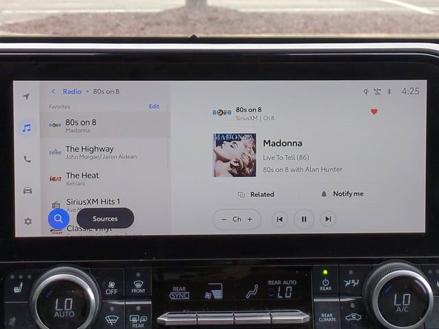 The Optional Features Included on this vehicles are: AWD, 3.329 Axle Ratio, 3rd row seats: split-bench, 4-Wheel Disc Brakes, 6 Speakers, ABS brakes, Air Conditioning, All Weather Floor & Cargo Liner (TMS), Alloy wheels, AM/FM radio: SiriusXM, Apple CarPlay/Android Auto, Auto High-beam Headlights, Auto-dimming Rear-View mirror, Automatic temperature control, Brake assist, Bumpers: body-color, Delay-off headlights, Door Edge Guards (TMS), Driver door bin, Driver vanity mirror, Dual front impact airbags, Dual front side impact airbags, Electronic Stability Control, Emergency communication system: Safety Connect (up to 10-year trial subscription), Exterior Parking Camera Rear, Four wheel independent suspension, Front anti-roll bar, Front Bucket Seats, Front Center Armrest, Front dual zone A/C, Front fog lights, Front reading lights, Fully automatic headlights, Garage door transmitter: HomeLink, Heated door mirrors, Heated Front Bucket Seats, Heated front seats, Illuminated entry, Knee airbag, Leather Shift Knob, Leather steering wheel, Low tire pressure warning, Occupant sensing airbag, Outside temperature display, Overhead airbag, Overhead console, Panic alarm, Passenger door bin, Passenger vanity mirror, Power door mirrors, Power driver seat, Power Liftgate, Power moonroof, Power passenger seat, Power steering, Power windows, Radio: 12.3" Toyota Audio Multimedia w/6 Speakers, Radio: 8" Toyota Audio Multimedia, Rear air conditioning, Rear anti-roll bar, Rear reading lights, Rear window defroster, Rear window wiper, Reclining 3rd row seat, Remote keyless entry, Roof rack: rails only, Security system, SofTex Seat Trim, Speed control, Speed-sensing steering, Split folding rear seat, Spoiler, Steering wheel mounted audio controls, Tachometer, Telescoping steering wheel, Tilt steering wheel, Traction control, Trip computer, Turn signal indicator mirrors, Variably intermittent wipers, and Wheels: 18" Machined-Finish Alloy.
