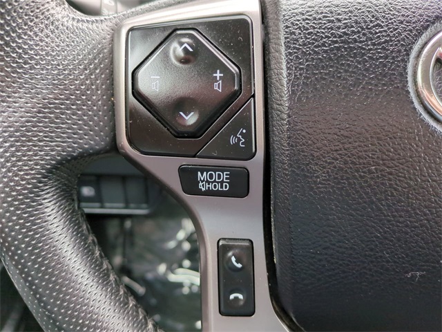 The Optional Features Included on this vehicles are: SR5 Package (Black Headlamp Bezel, Charcoal Grille w/Chrome Surround, Color-Keyed Overfenders, Daytime Running Lamps, Front Door Smart Key System w/Push Button Start, Front Fog & Driving Lamp, and Power Sliding Rear Window w/Privacy Glass), 4WD, 6 Speakers, ABS brakes, Air Conditioning, Alloy wheels, AM/FM radio: SiriusXM, Anti-whiplash front head restraints, Apple CarPlay/Android Auto, Auto High-beam Headlights, Auto-Dimming Inside Rear-View Mirror, Auto-dimming Rear-View mirror, Automatic temperature control, Axle Ratio: 3.91, Blind Spot Monitor w/Rear Cross Traffic Alert, Body Color Overfenders, Brake assist, Bumpers: body-color, Chrome Rear Bumper, Driver door bin, Dual front impact airbags, Dual front side impact airbags, Electronic Stability Control, Emergency communication system: Safety Connect (1-year trial), Exterior Parking Camera Rear, Fabric Seat Trim, Front anti-roll bar, Front Bucket Seats, Front Center Armrest, Front dual zone A/C, Front fog lights, Front reading lights, Front Seats, Front wheel independent suspension, Heated door mirrors, Illuminated entry, Knee airbag, Low tire pressure warning, Occupant sensing airbag, Outside temperature display, Overhead airbag, Overhead console, Panic alarm, Passenger door bin, Power door mirrors, Power driver seat, Power steering, Power windows, Radio: Audio, Radio: Premium Audio w/Dynamic Navigation, Rear Parking Assist Sonar, Rear step bumper, Remote keyless entry, Speed control, Speed-sensing steering, Split folding rear seat, Steering wheel mounted audio controls, Tachometer, Telescoping steering wheel, Tilt steering wheel, Traction control, Trip computer, Variably intermittent wipers, and Wheels: 16" Dark Gray Alloy.