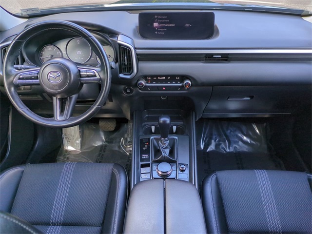 The Optional Features Included on this vehicles are: 4-Wheel Disc Brakes, 4.367 Axle Ratio, 8 Speakers, ABS brakes, Air Conditioning, Alloy wheels, AM/FM radio, AppLink/Apple CarPlay and Android Auto, Auto High-beam Headlights, Automatic temperature control, Brake assist, Bumpers: body-color, Delay-off headlights, Driver door bin, Driver vanity mirror, Dual front impact airbags, Dual front side impact airbags, Electronic Stability Control, Emergency communication system: MAZDA CONNECT, Exterior Parking Camera Rear, Front anti-roll bar, Front Bucket Seats, Front Center Armrest, Front dual zone A/C, Front reading lights, Front wheel independent suspension, Fully automatic headlights, Half Leatherette Seat Trim, Heated door mirrors, Heated Front Bucket Seats, Heated front seats, Illuminated entry, Knee airbag, Leather Shift Knob, Leather steering wheel, Low tire pressure warning, Occupant sensing airbag, Outside temperature display, Overhead airbag, Overhead console, Panic alarm, Passenger door bin, Passenger vanity mirror, Power door mirrors, Power driver seat, Power Liftgate, Power steering, Power windows, Radio data system, Radio: AM/FM/HD Audio System, Rain sensing wipers, Rear seat center armrest, Rear window defroster, Rear window wiper, Remote keyless entry, Speed control, Speed-sensing steering, Split folding rear seat, Spoiler, Steering wheel mounted audio controls, Tachometer, Telescoping steering wheel, Tilt steering wheel, Traction control, Trip computer, Turn signal indicator mirrors, Variably intermittent wipers, and Wheels: 17" x 7J Aluminum Alloy.