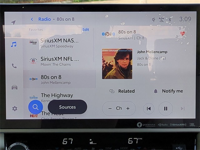 The Optional Features Included on this vehicles are: 3.4L V6, 12 Speakers, 3.31 Axle Ratio, 4-Wheel Disc Brakes, ABS brakes, Air Conditioning, Alloy wheels, AM/FM radio: SiriusXM, Apple CarPlay/Android Auto, Auto High-beam Headlights, Auto-dimming door mirrors, Auto-dimming Rear-View mirror, Automatic temperature control, Brake assist, Bumpers: body-color, Compass, Delay-off headlights, Driver door bin, Driver vanity mirror, Dual front impact airbags, Dual front side impact airbags, Electronic Stability Control, Emergency communication system: Safety Connect (10-year trial), Exterior Parking Camera Rear, Front anti-roll bar, Front Bucket Seats, Front Center Armrest, Front dual zone A/C, Front fog lights, Front reading lights, Front wheel independent suspension, Fully automatic headlights, Garage door transmitter: HomeLink, Heads-Up Display, Heated & Ventilated Front Bucket Seats, Heated door mirrors, Heated front seats, Heated rear seats, Heated steering wheel, Illuminated entry, Knee airbag, Leather Shift Knob, Low tire pressure warning, Memory seat, Navigation System, Occupant sensing airbag, Outside temperature display, Overhead airbag, Overhead console, Panic alarm, Passenger door bin, Passenger vanity mirror, Power door mirrors, Power driver seat, Power moonroof, Power passenger seat, Power steering, Power windows, Radio data system, Radio: Premium Audio w/JBL, Rain sensing wipers, Rear reading lights, Rear seat center armrest, Rear step bumper, Rear window defroster, Remote keyless entry, Security system, Semi-Aniline Leather Seat Trim, Speed control, Speed-sensing steering, Split folding rear seat, Steering wheel memory, Steering wheel mounted audio controls, Tachometer, Telescoping steering wheel, Tilt steering wheel, Traction control, Trip computer, Turn signal indicator mirrors, Variably intermittent wipers, Ventilated front seats, Ventilated rear seats, Voltmeter, and Wheels: 22" Dark Chrome Alloy.