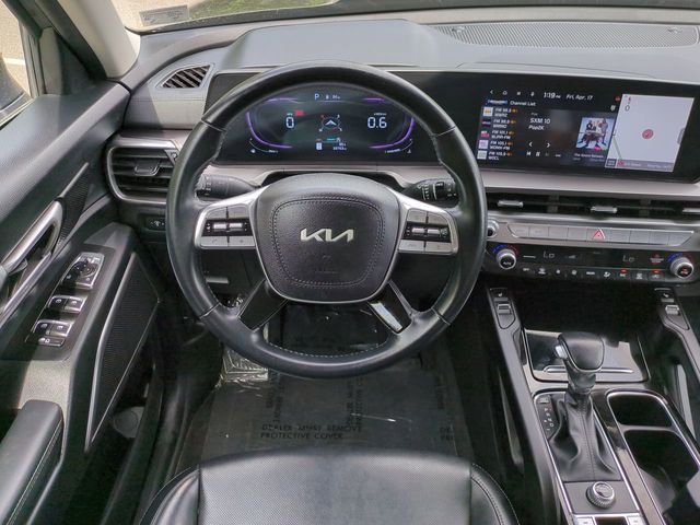 The Optional Features Included on this vehicles are: 3rd row seats: split-bench, 4-Wheel Disc Brakes, 6 Speakers, ABS brakes, Air Conditioning, Alloy wheels, AM/FM radio: SiriusXM, Apple CarPlay & Android Auto, Auto High-beam Headlights, Automatic temperature control, Brake assist, Bumpers: body-color, Carpeted Floor Mats, Delay-off headlights, Driver door bin, Driver vanity mirror, Dual front impact airbags, Dual front side impact airbags, Electronic Stability Control, Emergency communication system: 911 Connect, Exterior Parking Camera Rear, Four wheel independent suspension, Front anti-roll bar, Front Bucket Seats, Front Center Armrest, Front dual zone A/C, Front reading lights, Fully automatic headlights, Heated door mirrors, Heated Front Bucket Seats, Heated front seats, Illuminated entry, Knee airbag, Leather Shift Knob, Leather steering wheel, Low tire pressure warning, Navigation System, Occupant sensing airbag, Outside temperature display, Overhead airbag, Overhead console, Panic alarm, Passenger door bin, Passenger vanity mirror, Power door mirrors, Power driver seat, Power Liftgate, Power moonroof, Power steering, Power windows, Radio data system, Radio: AM/FM Display Audio System, Rear air conditioning, Rear anti-roll bar, Rear audio controls, Rear reading lights, Rear side impact airbag, Rear window defroster, Rear window wiper, Reclining 3rd row seat, Remote keyless entry, Security system, Speed control, Speed-sensing steering, Split folding rear seat, Spoiler, Steering wheel mounted audio controls, SynTex Synthetic Leather Seat Trim, Tachometer, Telescoping steering wheel, Tilt steering wheel, Traction control, Trip computer, Turn signal indicator mirrors, Variably intermittent wipers, and Wheels: 20" x 7.5" Black Finish.