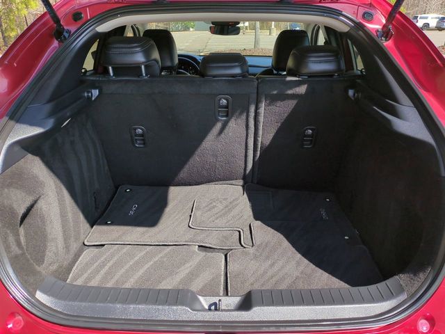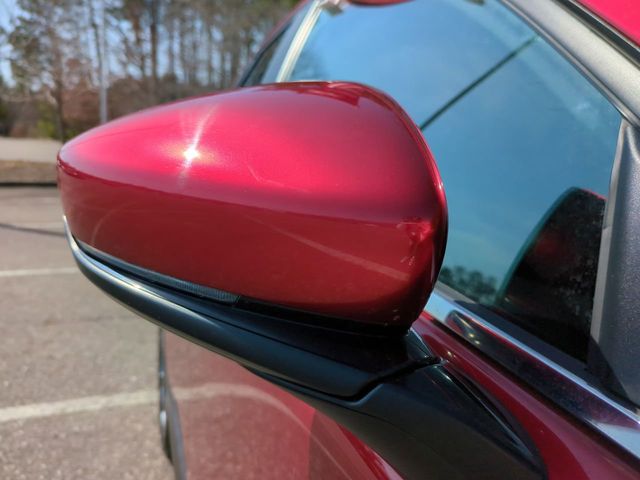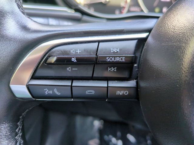 The Optional Features Included on this vehicles are: 4-Wheel Disc Brakes, 6 Speakers, ABS brakes, Air Conditioning, Alloy wheels, AM/FM radio, AppLink/Apple CarPlay and Android Auto, Auto High-beam Headlights, Automatic temperature control, Brake assist, Bumpers: body-color, Compass, Delay-off headlights, Driver door bin, Driver vanity mirror, Dual front impact airbags, Dual front side impact airbags, Electronic Stability Control, Emergency communication system: Mazda Connected Services (3-year trial subscription included), Exterior Parking Camera Rear, Front anti-roll bar, Front Bucket Seats, Front Center Armrest, Front dual zone A/C, Front reading lights, Front wheel independent suspension, Fully automatic headlights, Heated door mirrors, Heated Front Bucket Seats, Heated front seats, Illuminated entry, Knee airbag, Leather Shift Knob, Leather steering wheel, Leatherette Seat Trim, Low tire pressure warning, MAZDA CONNECT Infotainment System, Memory seat, Occupant sensing airbag, Outside temperature display, Overhead airbag, Overhead console, Panic alarm, Passenger door bin, Passenger vanity mirror, Power door mirrors, Power driver seat, Power moonroof, Power steering, Power windows, Radio data system, Radio: AM/FM Audio System, Rain sensing wipers, Rear seat center armrest, Rear side impact airbag, Rear window defroster, Rear window wiper, Remote keyless entry, Soul Red Crystal Metallic Paint Charge, Speed control, Speed-sensing steering, Split folding rear seat, Spoiler, Steering wheel mounted audio controls, Tachometer, Telescoping steering wheel, Tilt steering wheel, Traction control, Trip computer, Turn signal indicator mirrors, Variably intermittent wipers, and Wheels: 18" x 7J Aluminum Alloy.