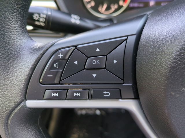 The Optional Features Included on this vehicles are: CVT with Xtronic, 17" Machined Alloy Wheels, 4-Wheel Disc Brakes, 6 Speakers, ABS brakes, Air Conditioning, Alloy wheels, AM/FM radio: SiriusXM, Auto High-beam Headlights, Blind Spot Warning, Brake assist, Bumpers: body-color, Cloth Seat Trim, Delay-off headlights, Driver door bin, Driver vanity mirror, Dual front impact airbags, Dual front side impact airbags, Electronic Stability Control, Floor Mats/Trunk Mat/Hideaway Net, Four wheel independent suspension, Front anti-roll bar, Front Bucket Seats, Front Center Armrest, Front reading lights, Fully automatic headlights, Illuminated entry, Knee airbag, Low tire pressure warning, NissanConnect featuring Apple CarPlay and Android Auto, Occupant sensing airbag, Outside temperature display, Overhead airbag, Overhead console, Panic alarm, Passenger door bin, Passenger vanity mirror, Power door mirrors, Power driver seat, Power steering, Power windows, Radio data system, Radio: AM/FM Audio System, Rear anti-roll bar, Rear Parking Sensors, Rear reading lights, Rear seat center armrest, Rear side impact airbag, Rear window defroster, Remote keyless entry, Security system, Speed control, Speed-sensing steering, Speed-Sensitive Wipers, Split folding rear seat, Steering wheel mounted audio controls, Tachometer, Telescoping steering wheel, Tilt steering wheel, Traction control, Trip computer, and Variably intermittent wipers.