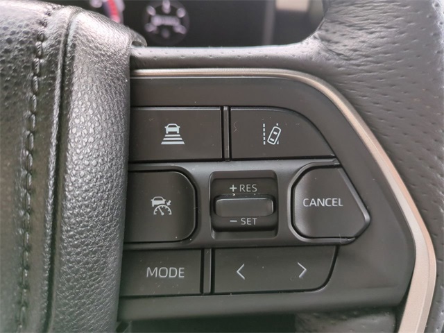 The Optional Features Included on this vehicles are: Nightshade Package (Wheels: 20" x 8J Matte Black TRD Sport Style), Panoramic View Monitor Package, Power Package (120V Deck & Cabin Power Supply and Wireless Charger), Premium Package (High Grade Full LED Headlamp), Towing Package, 4WD, Boulder Artificial Leather, 20" Alloy Wheels, 3.31 Axle Ratio, 4-Wheel Disc Brakes, 8-Way Pwr Adjustable Heated/Ventilated Front Seats, 9 Speakers, ABS brakes, Air Conditioning, All Weather Floor Liners (TMS), Alloy wheels, AM/FM radio: SiriusXM, Apple CarPlay/Android Auto, Auto High-beam Headlights, Auto-dimming door mirrors, Auto-dimming Rear-View mirror, Automatic temperature control, Brake assist, Bumpers: body-color, Delay-off headlights, Driver door bin, Driver vanity mirror, Dual front impact airbags, Dual front side impact airbags, Electronic Stability Control, Emergency communication system: Safety Connect (10-year trial), Exterior Parking Camera Rear, Folding Color-Keyed Outside Mirrors, Front anti-roll bar, Front Bucket Seats, Front Center Armrest, Front dual zone A/C, Front fog lights, Front reading lights, Front wheel independent suspension, Fully automatic headlights, Garage door transmitter: HomeLink, Heated door mirrors, Heated front seats, Heated Leather Steering Wheel, Illuminated entry, JBL Premium Audio, Knee airbag, Leather Shift Knob, Leather steering wheel, Low tire pressure warning, Memory seat, Navigation System, Occupant sensing airbag, Outside temperature display, Overhead airbag, Overhead console, Panic alarm, Passenger door bin, Passenger vanity mirror, Power door mirrors, Power driver seat, Power passenger seat, Power steering, Power Tilt/Slide Panoramic Sunroof, Power windows, Radio data system, Radio: Audio Multimedia System, Rear reading lights, Rear seat center armrest, Rear step bumper, Rear window defroster, Remote keyless entry, Safety Connect, Security system, SofTex Seat Trim, Speed control, Speed-sensing steering, Split folding rear seat, Steering wheel mounted audio controls, Tachometer, Telescoping steering wheel, Tilt steering wheel, Traction control, Trip computer, Turn signal indicator mirrors, Variably intermittent wipers, Ventilated front seats, and Voltmeter.
