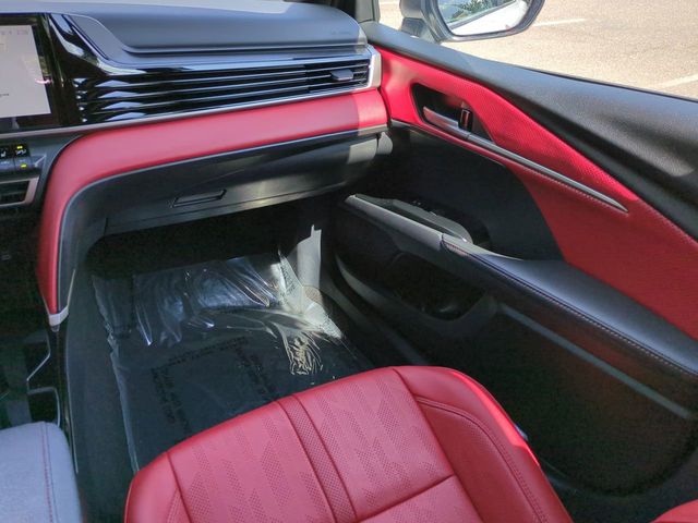 The Optional Features Included on this vehicles are: Cockpit Red Leather, 4-Wheel Disc Brakes, 6 Speakers, ABS brakes, Air Conditioning, Alloy wheels, AM/FM radio: SiriusXM, Apple CarPlay/Android Auto, Auto High-beam Headlights, Auto-dimming Rear-View mirror, Automatic temperature control, Brake assist, Bumpers: body-color, Delay-off headlights, Driver door bin, Driver vanity mirror, Dual front impact airbags, Dual front side impact airbags, Electronic Stability Control, Emergency communication system: Safety Connect (5-year trial), Exterior Parking Camera Rear, Four wheel independent suspension, Front Accent Lights, Front anti-roll bar, Front Bucket Seats, Front Center Armrest, Front dual zone A/C, Front reading lights, Fully automatic headlights, Garage door transmitter: HomeLink, Heated door mirrors, Heated Front Seats, Heated front seats, Heated steering wheel, Illuminated entry, Illuminated Trunk Sill, Knee airbag, Leather Seat Trim, Leather Shift Knob, Leather steering wheel, Low tire pressure warning, Navigation system: Drive Connect (1 year trial) includes Cloud Navigation with real time traffic and Google POI, Occupant sensing airbag, Outside temperature display, Overhead airbag, Overhead console, Panic alarm, Panoramic Glass Roof, Passenger door bin, Passenger vanity mirror, Power door mirrors, Power driver seat, Power passenger seat, Power steering, Power windows, Radio data system, Radio: 12.3" Toyota Multimedia Audio, Rear anti-roll bar, Rear reading lights, Rear seat center armrest, Rear window defroster, Remote keyless entry, Security system, Speed control, Speed-sensing steering, Split folding rear seat, Spoiler, Steering wheel mounted audio controls, Telescoping steering wheel, Tilt steering wheel, Traction control, Trip computer, Turn signal indicator mirrors, Variably intermittent wipers, and Wheels: 19" Smoked Gray and Black-Finished Alloy.