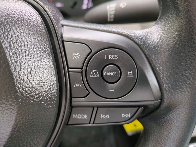 The Optional Features Included on this vehicles are: 4-Wheel Disc Brakes, 6 Speakers, ABS brakes, Air Conditioning, AM/FM radio: SiriusXM, Apple CarPlay/Android Auto, Auto High-beam Headlights, Automatic temperature control, Brake assist, Bumpers: body-color, Delay-off headlights, Driver door bin, Driver vanity mirror, Dual front impact airbags, Dual front side impact airbags, Electronic Stability Control, Emergency communication system: Safety Connect (up to 10-year trial subscription), Exterior Parking Camera Rear, Fabric Seat Trim, Front anti-roll bar, Front Bucket Seats, Front Center Armrest, Front reading lights, Front wheel independent suspension, Fully automatic headlights, Heated door mirrors, Illuminated entry, Knee airbag, Low tire pressure warning, Mudguards, Occupant sensing airbag, Outside temperature display, Overhead airbag, Panic alarm, Passenger door bin, Passenger vanity mirror, Power door mirrors, Power steering, Power windows, Radio data system, Radio: 8" Toyota Audio Multimedia, Rear anti-roll bar, Rear seat center armrest, Rear side impact airbag, Rear window defroster, Remote keyless entry, Speed control, Split folding rear seat, Steering wheel mounted audio controls, Tachometer, Telescoping steering wheel, Tilt steering wheel, Traction control, Trip computer, and Wheels: 16" Steel with Covers.